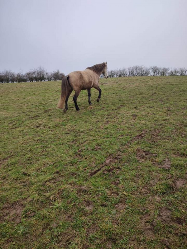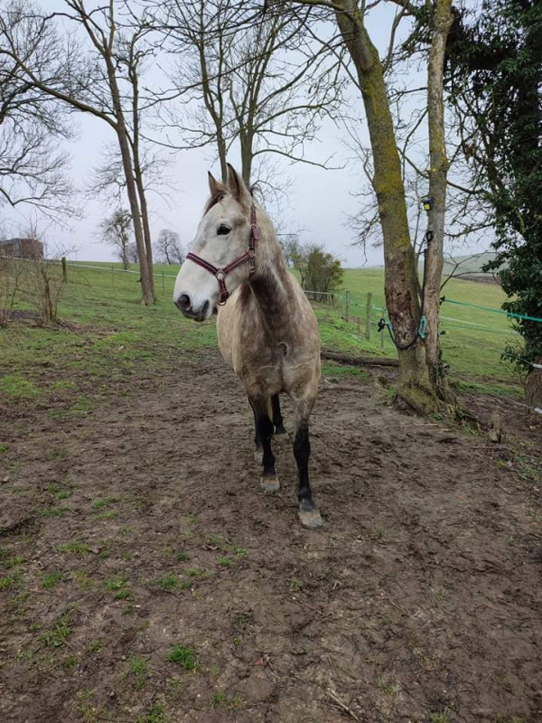Aujourd'hui, je devais faire une balade mais vu la météo ça c'est transformé en balade à pied. Bon déjà le temps que je m en occupe avant de partir, il faisait des aller retour au trot et galop. Quand je l appelais il descendait comme un dingue au galop en finissant un glissade avec les fesses par terre (comme en western) et s arrêtait devant moi avant de repartir. J ai pu l attraper au bout d'une dizaine d aller retour comme ça. Petite ration puis go faire un tour en ville pour marcher sur du sec