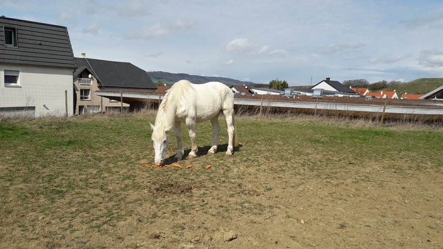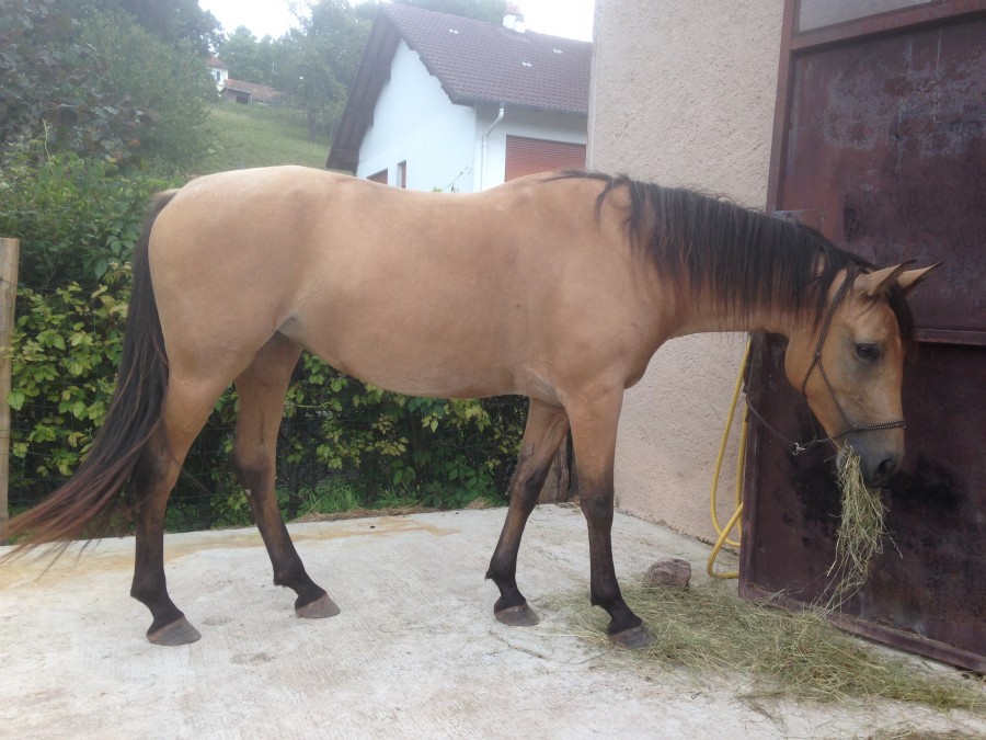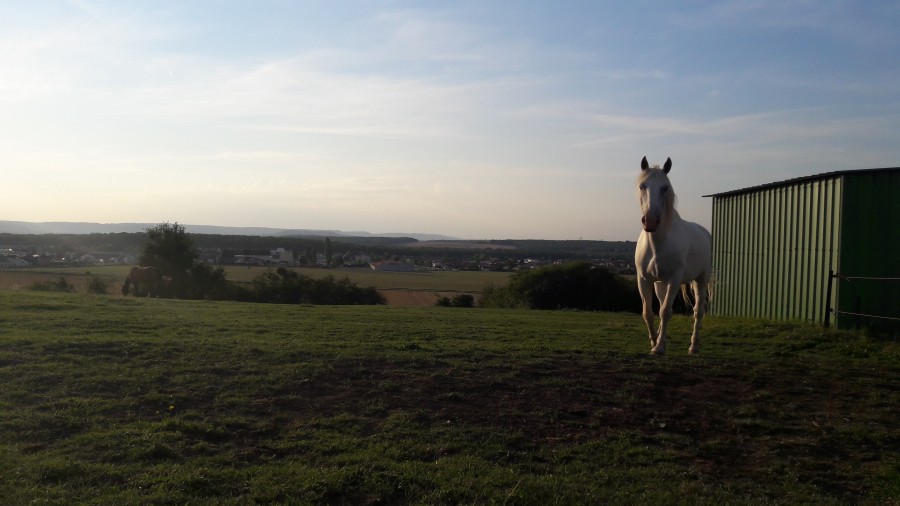 Croisement réussi dans son cas, il a gardé le côté rustique et puissant du camargue, et aussi son aptitude au rassembler (et aux demi-tours inopinés :p), et du côté du SF, la morphologie plus sportive et un peu de taille aussi, il est pas aussi riquiqui que le Camargue et fait moins "poney".