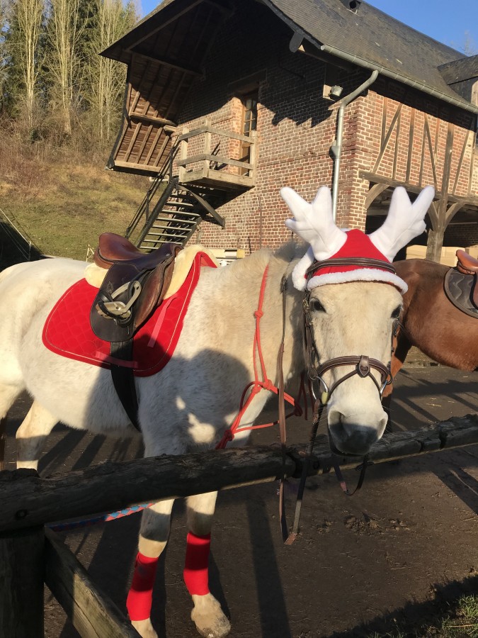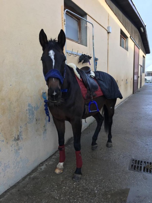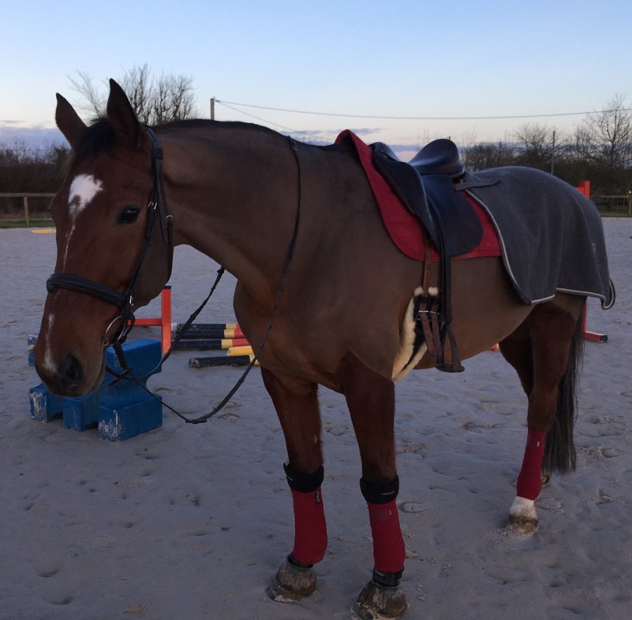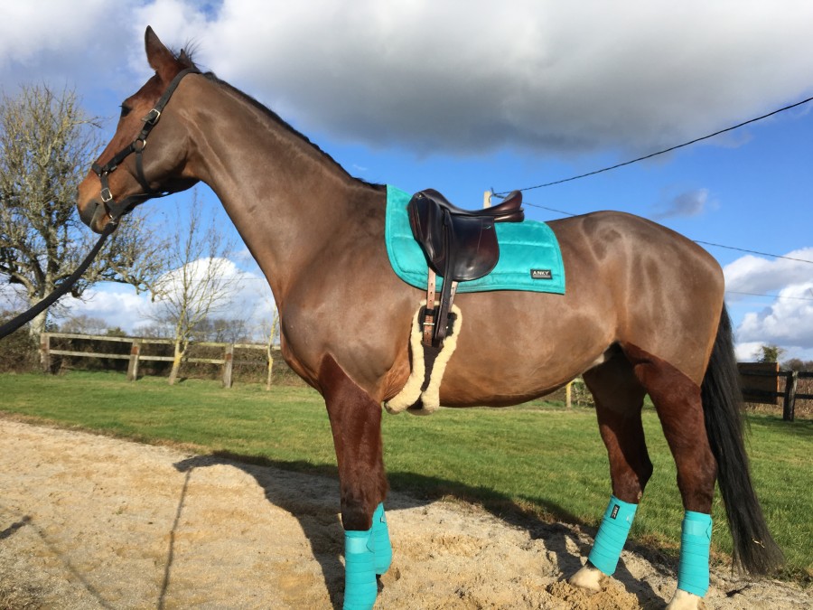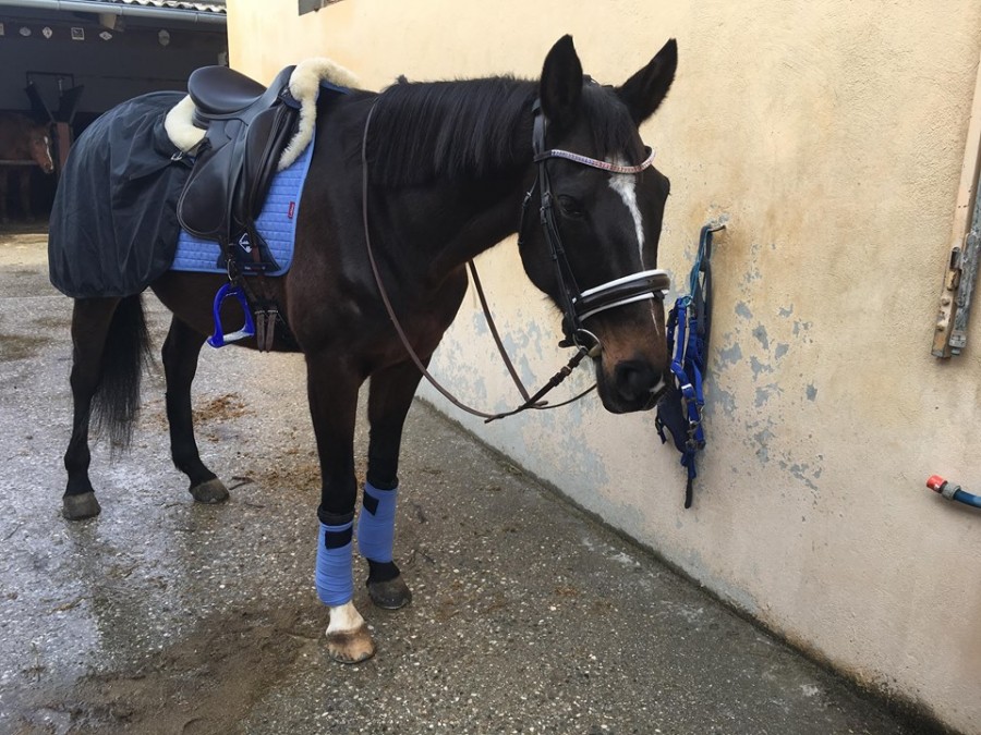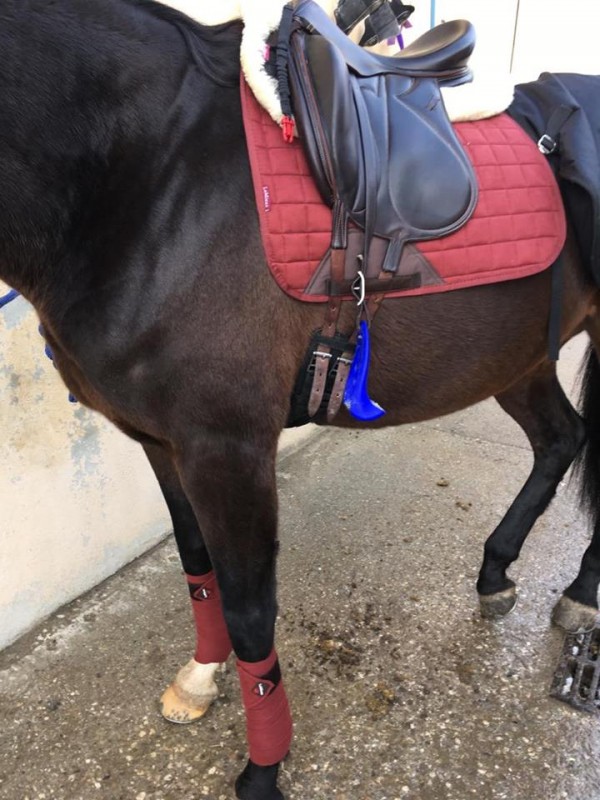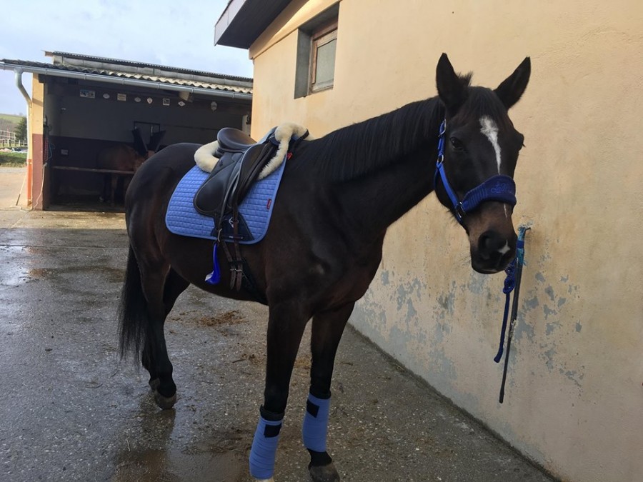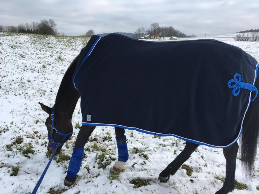 Et non monté mais mon cadeau de noel à moi même, assorti avec le licol et les bandes : vive le bleu ! couverture polaire greenfield selection bleu marine liseré bleu roi