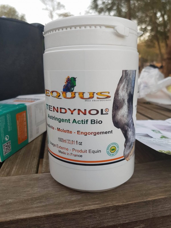 le travail (Tendonil) et après (douche froide, Arnicagel, bandage).Contrôler le poids de la jument: toujours l’avoir aussi athlétique que possible.