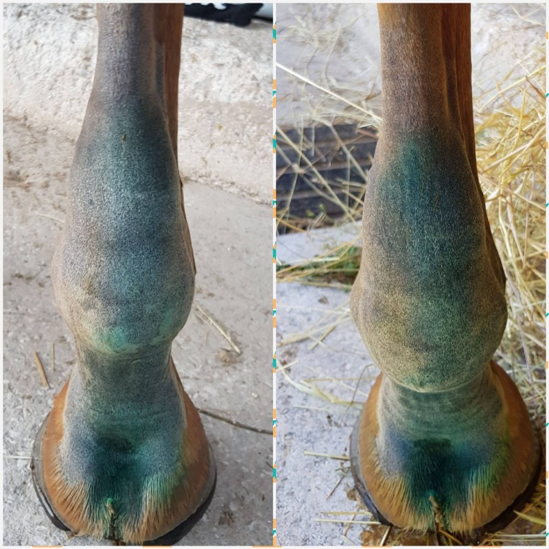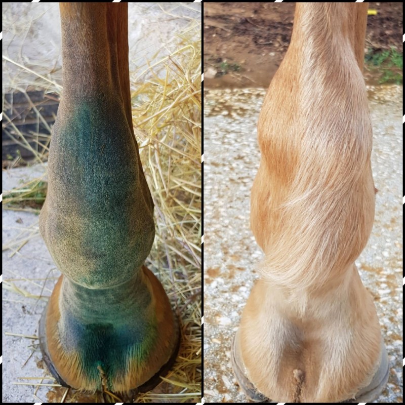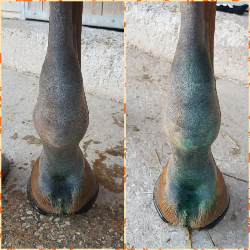 A gauche c'est après avoir enlever le bandage soit 48h après l'infiltration. A droite la molette un jour avant l'infiltration