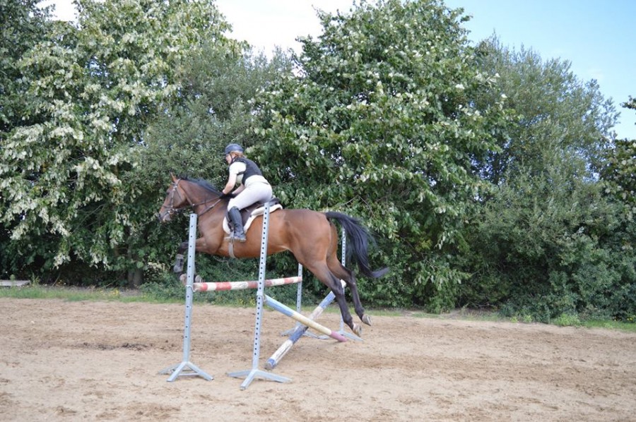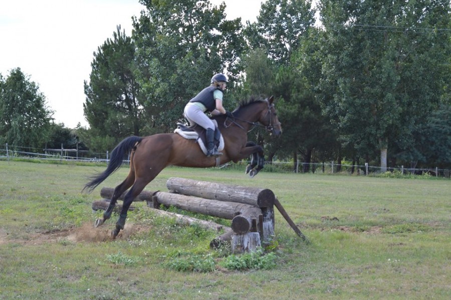 CSO : parcours à 90/95 avec un triple, une magnifique ligne brisée, un directionnel. Je me fais surprendre par mon cheval qui saute tout facilement, un refus mais aucune barre ^^ Mes camarades de stage font 4 et 8 points.