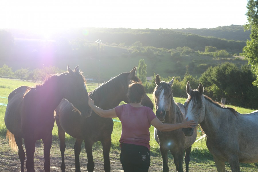 Par la suite, quand d'autres chevaux sont arrivé et qu'il n'était donc plus possible de le laisser divaguer, plutôt que de le mettre à l'écart derrière une DMZ digne de la coré, il était plutôt en place centrale, là où il peut faire son boulot d'entier : surveiller. Et je n'ai plus jamais eu de problème de comportement avec lui.