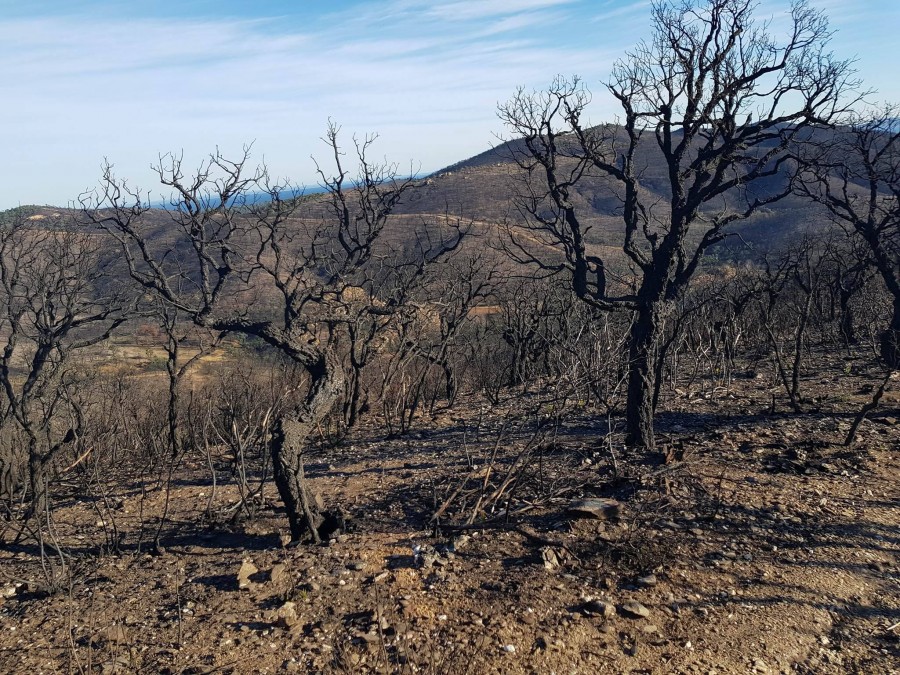 Malheureusement il faudras beaucoup de temps à la nature pour se remettre de tout sa ... 3 h de balades lunaires où les oiseaux et autre animaux ne sont plus . L'odeur de cendre et même encore présente.... On aperçois des petites touffe verte que l'on qualifie habituellement de mauvaise herbe. Et pourtant c'est elles aujourd'hui qui nous redonne espoir de retrouver nôtre magnifique paysages ...
