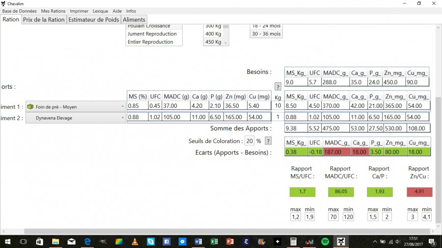je viens de rentrer les rations sur chevalim de ma jument et voici le résultats