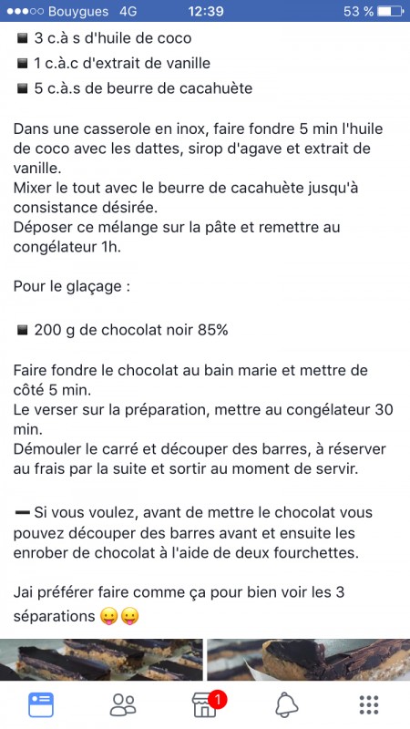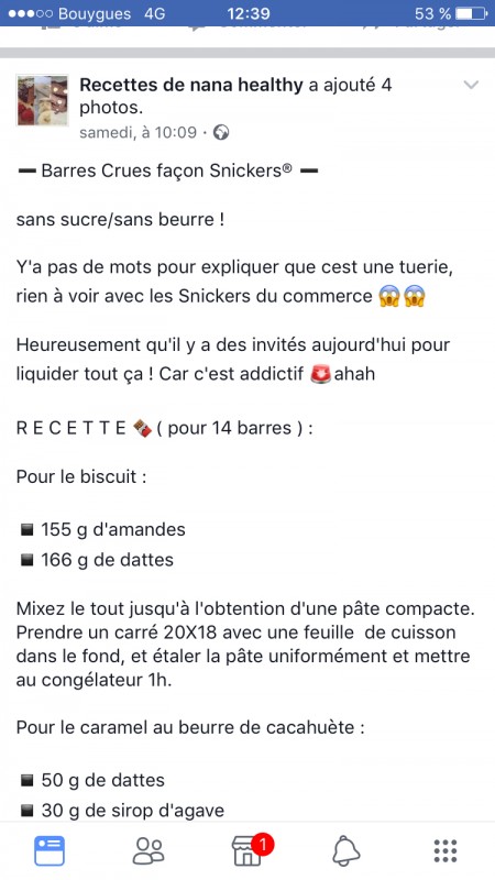 Sinon j'ai fait des barres un peu dans l'esprit snikers vegan qui sont juste une tuerie ! Niveau calorie c'est quand même pas mal (beurre de cacahuètes, dattes, huile de coco, sirop d'agave et amandes) Mais c'est trop Bon.