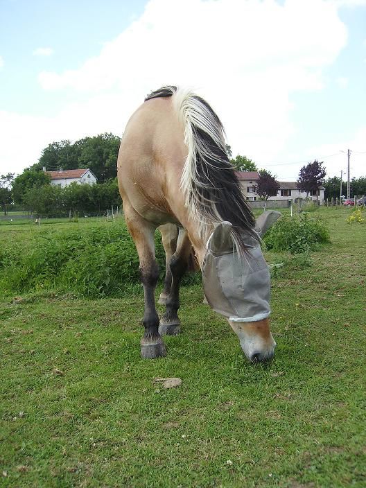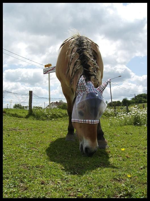 Je lui met lorsque beaucoup de mouches tournent autour d'elle. Je lui enlève dès qu'il fait plus frais, en fin d'aprem ou début de soirée, lorsque les mouches sont parties.
