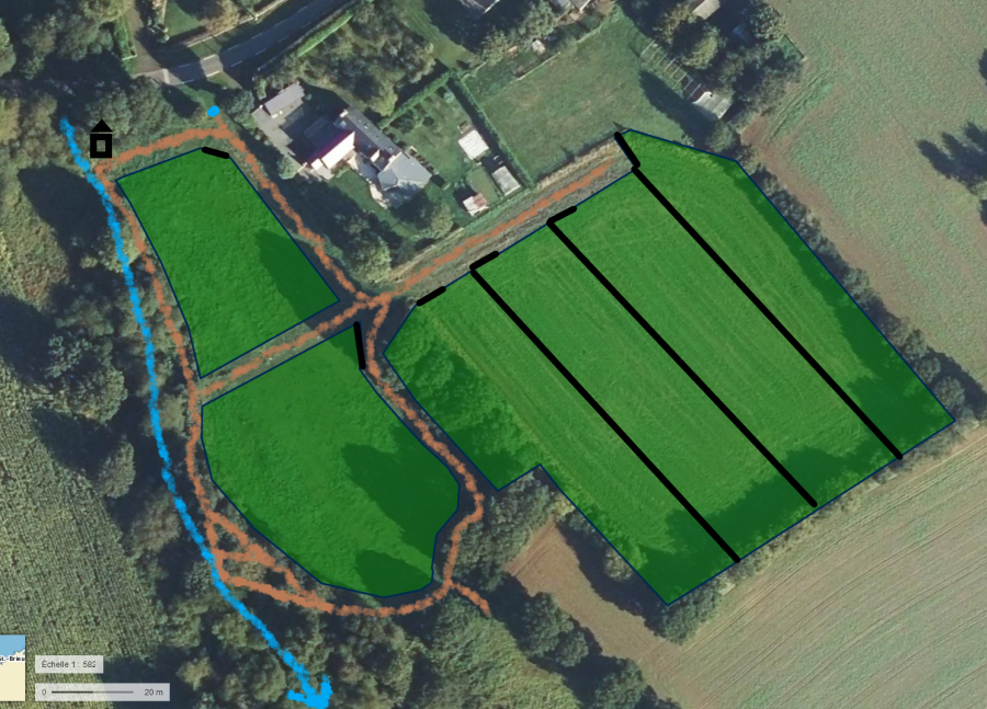À savoir qu’un voisin prête déjà un petit pré en face de la maison qui est deja clôturé et qu’il y a pas mal de parcelles autours non utilisées que j’espère pouvoir louer. Mais ça ne se fera pas forcément dans l’immédiat, le but n’étant pas de harceler les voisins. C’est une zone agricole +++ et il va falloir déjà que l’on se fasse accepter