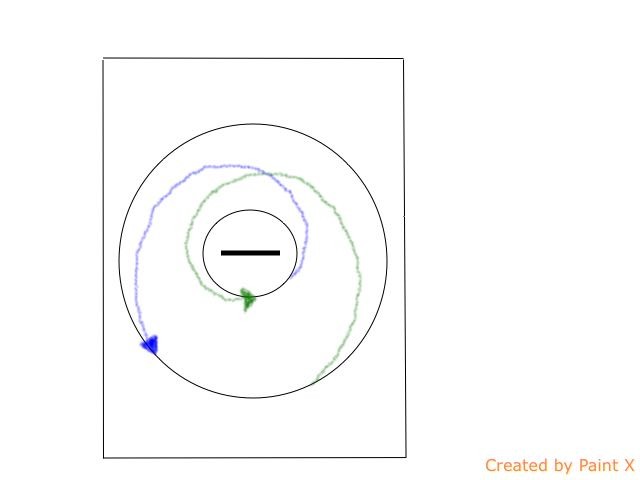 La 1ère version c'est ce qu'il faut essayer de faire (tu vois qu'il faut parcourir au minimum plus de la moitié du cercle pour rejoindre l'autre cercle, alors que toi tu faisais ça en 1/4 de cercle) :