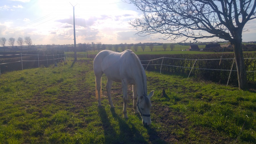 Il est encore au boxe et partira en pâture début mai le temps de refaire les clôtures comme il faut. Je vais continuer les balades quand il sortira en pâture sinon il va exploser avec l'herbe du printemps xD
