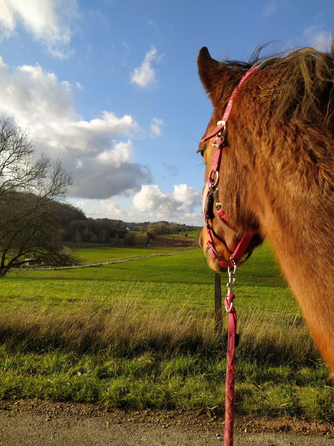 Mais ahahahah, il repart comme un gros couillon juste derrière, tourne et passe derrière des chandeliers. 2 options : je lâche pas et il les emmène avec au risque de se faire mal/peur ou je lâche. Ben j'ai lâché. Et poney s'est envolé. Il s'est barré plein cul de la carrière (que j'avais pas fermée, ben non voyons je l'ai à longe peut pas y avoir de soucis ....) et ne s'est pas arrêté. J'ai même cru le voir partir loin devant alors qu'il est remonté entre les prés en foutant le bordel au passage. J'ai couru le chercher du côté de son pré (donc loin lol), pas de cheval. Monsieur faisait son cake là-haut près de la forêt.