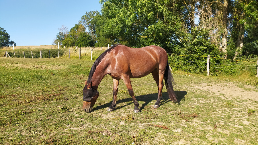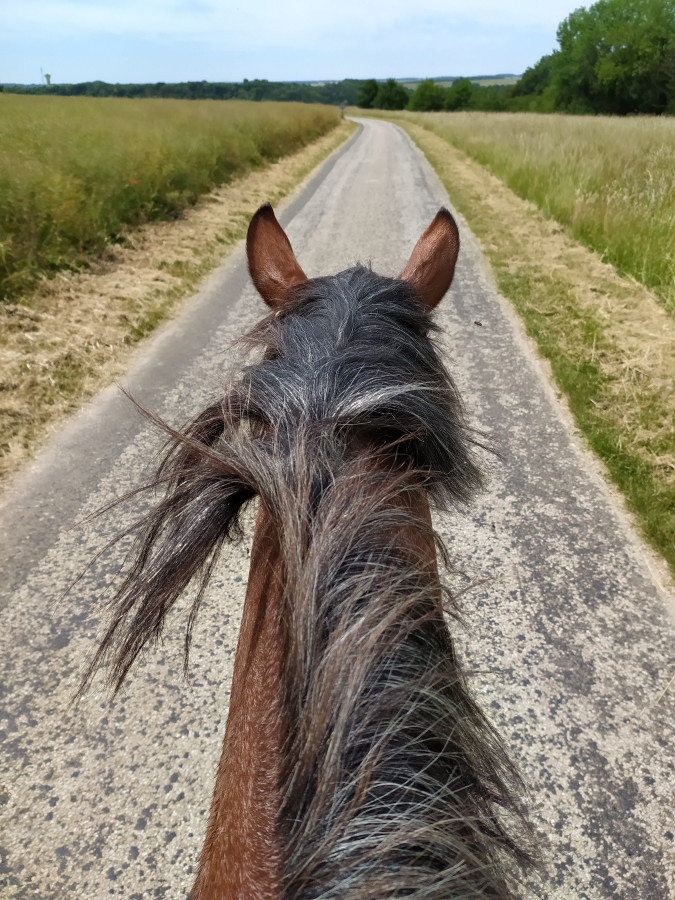 J'ai démarré les "sorties" au trot c'est quand même vite nul et relou. Pour le moment au sein de l'écurie, entre les prés et dans le sous bois pour avoir de longues lignes droite. Du coup malgré la chaleur aujourd'hui, on était super bien à l'ombre des arbres.