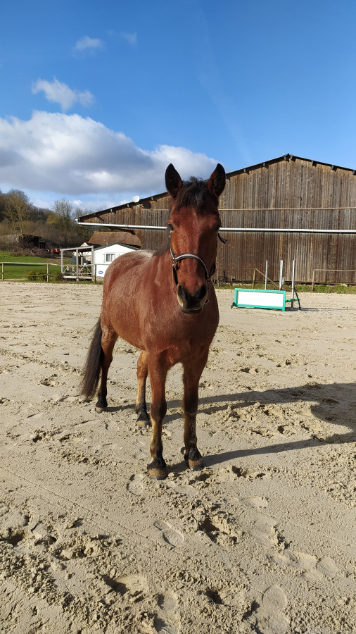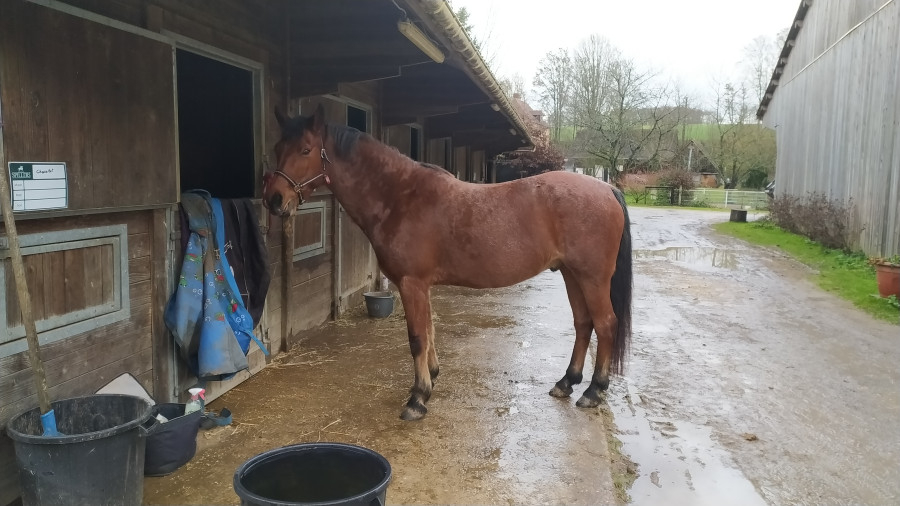 J'arrive de bon matin dans l'idée de le laisser se défouler un peu avant puisque sa journée allait être en partie amputée avec la sédation. Grand bien m'a pris ! Un vrai dragon le bordel ! Déjà un mini "hii" annonciateur en bout de longe que je calme puis je lâche en carrière. Un petit départ gentil mais ça se voyait qu'il avait le feu aux fesses. Je me mets à courir et c'est bon j'ai allumé la mèche. Il part plein cul avec son "hii" et secouage d'encolure de poney énervé, il m'a fait 3 tours de carrière où il reprenait de la vitesse dans les longueurs pour venir se planter dans le coin suivant.