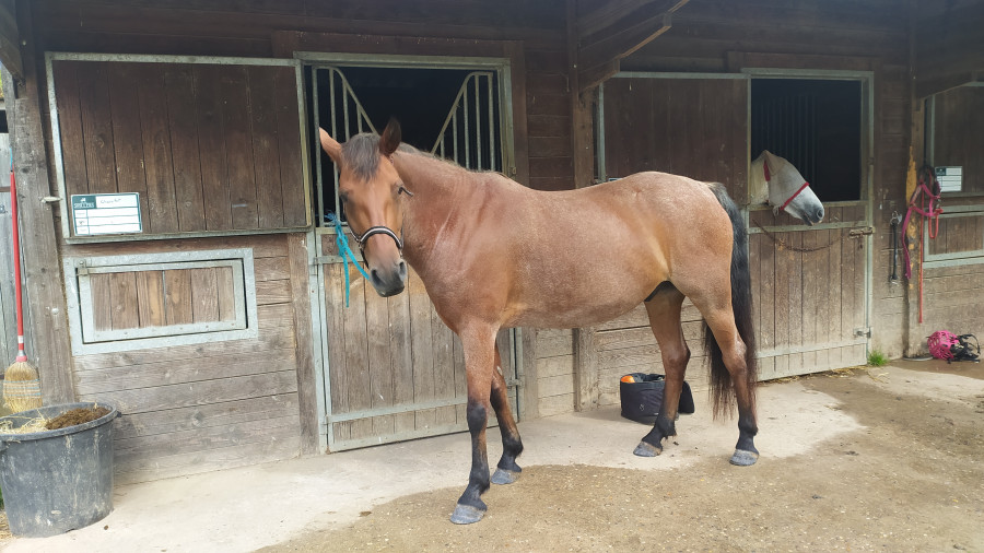 Un petit cheval qui malheureusement après avoir été victime de boiteries répétées fut prié de laisser son box libre pour un cheval qui pouvait être rentable. Il est donc parti avec ses propriétaires qui m'ont gentiment tenu au courant et m'ont permise de le retrouver quelques mois après et même de le prendre en DP un mois entier gratuitement pendant qu'elles étaient en vacances ! Mes derniers et mes plus beaux souvenirs avec lui, cette photo en fait partie. Il coule maintenant une retraite paisible dans un pré avec tout un petit groupe de filles !