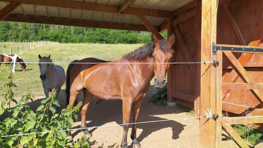Petit coucou au Choco ce jour, je l'ai laissé 15 jours tranquille au pré avec ses copines, zéro sollicitations.