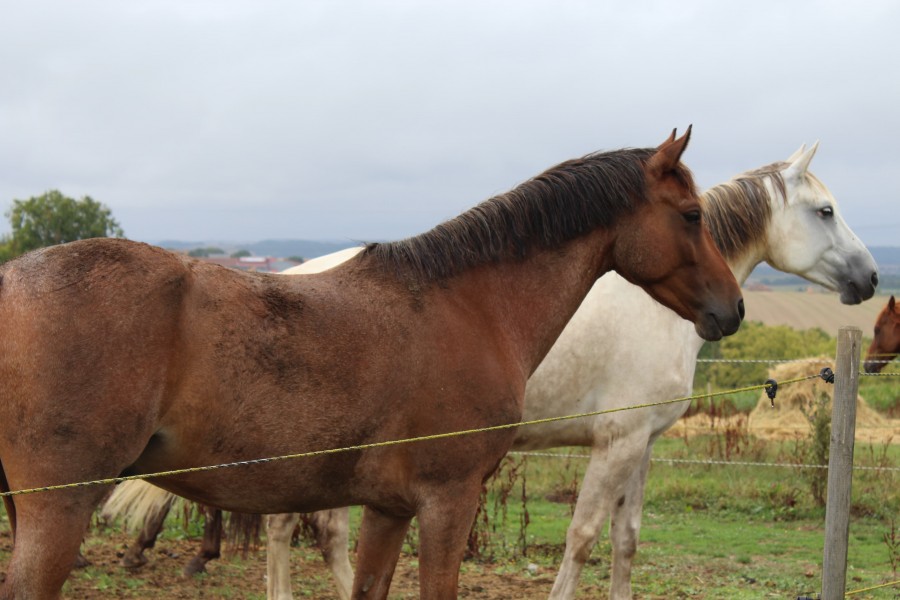 Un peu de stress pour moi ce soir, de nouveaux loulous intègrent le pré, un hongre et une pouliche qui ont l'habitude de se côtoyer. Le troupeau étant bien posé depuis un moment, j'ai un peu peur que Choco ait envie de faire ami-ami avec la demoiselle mais que l'autre la défende ...et que les bobos reviennent !