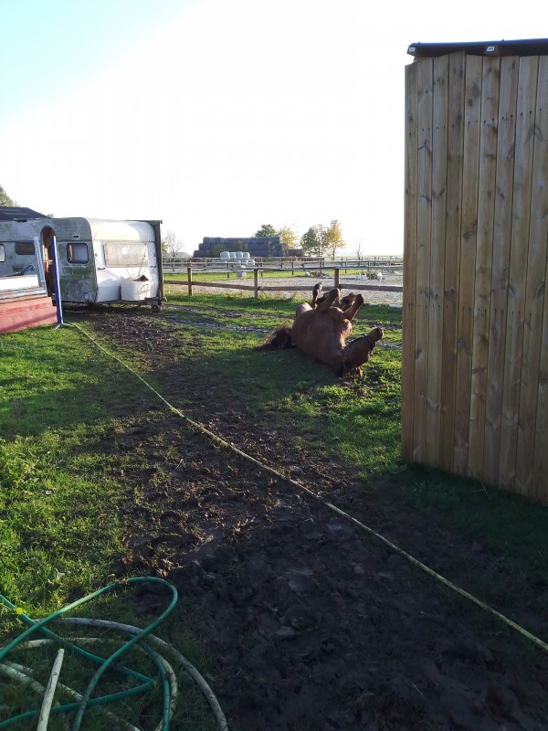 Après tout ça, je file le lâcher avec une de ses copines dans un paddock pour qu'il profite de l'accalmie et de l'herbe qui lui manque tant. Et bah trop heureux, le poney, ils ont bien joué les deux et ils en avaient encore sous la patte ces truands là
