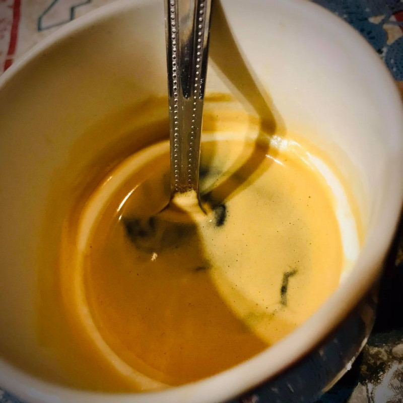 Depuis hier, je suis en pleine recherche d'équilibre (lire réglage) pour avoir un expressi digne de ce nom. Hier on le trouvait très bon, mais c'était tout nouveau. Et ce matin je me suis rendue compte que ça sentait quand même bien la flotte et que la liqueur était plutôt très claire.