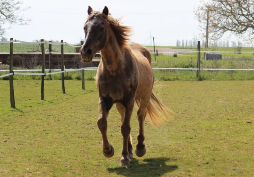 pnbost On ne voit pas très bien sur la photo. Mais il semblerai légèrement sooty ton palomino. Ce qui change encore la nuance (fonce la robe et peu donner une teinte plus foncée/argentée aux crins). Tu as raison en fait c’est pas simple la génétique des robes