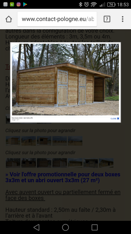 Concernant les boxes, je vais prendre ceux-ci : 2 boxes 3x3 et un abris 3x4 poir stocker la paille et le foin