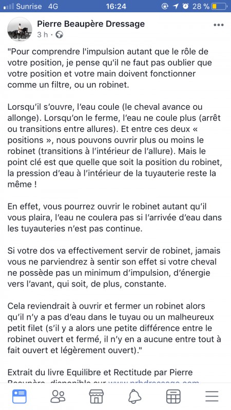 Ne serait-ce que sur le fait de te faire trotter assis pour demander l'extension d'encolure, sur un cheval pas bien musclé du dos, ça laisse perplexe quand même
