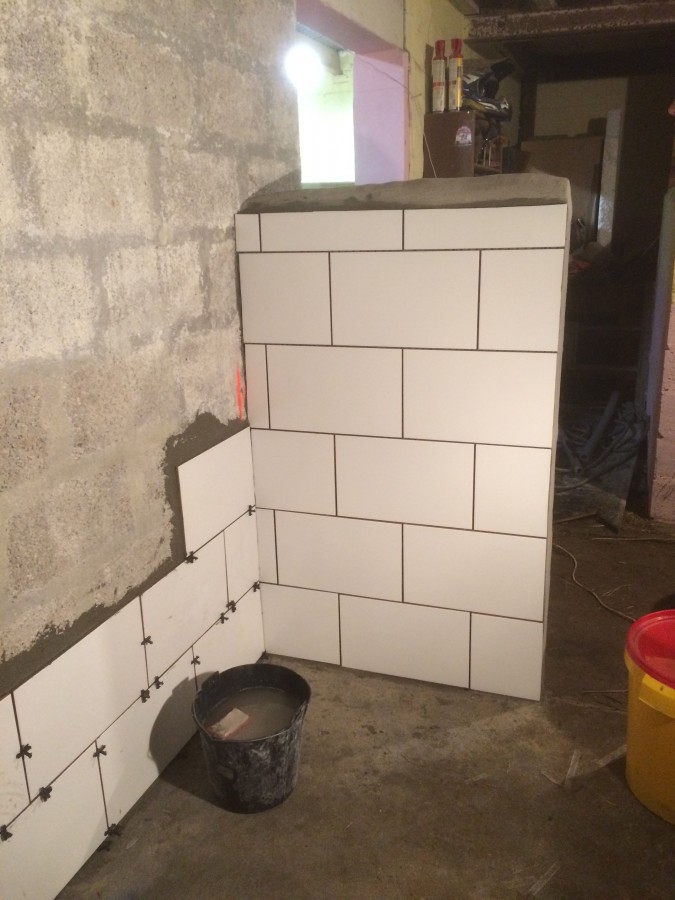 La salle de soin avance, l’enduit n’a pas tenu du coup on a mis carreau de plâtre et la dalle est faite! Se week-end on s’attelle à la faïence et peinture si on a le temps