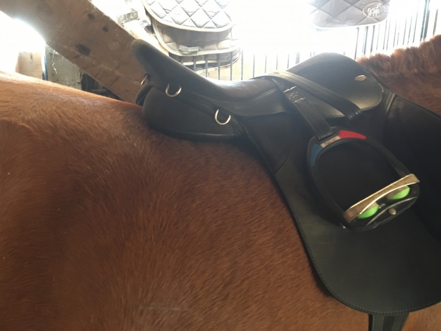 En prenant une ouverture plus étroites, les pattes d'arçon sont le long du cheval, mais la selle dégarrotterait énormément et serait déséquilibrée vers l'arrière. Alors aujourd'hui, j'ai pas trop ce problème parce que Poney est fait un peu le cul plus haut que le reste (je pense qu'il restera un peu comme ça), mais ça n'en reste que ça ne va pas.