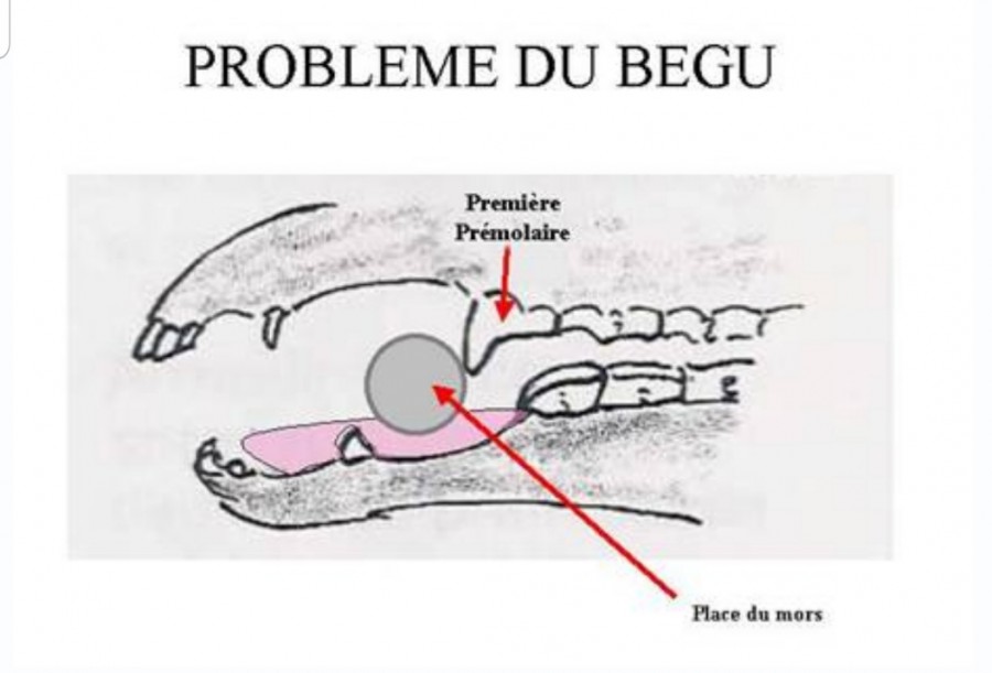 Un cheval bégu est un cheval qui a le défaut inverse du cheval prognate. En gros, sa machoire supérieure est plus avancée que sa machoire inférieure donc les dents de devant ne se touchent pas et l'usure ne se fait pas naturellement. Dans les cas les plus "sévères" que j'aie pu voir les chevaux avaient du mal à s'alimenter et devaient être suivis par le dentiste tous les 5/6 mois maximum.