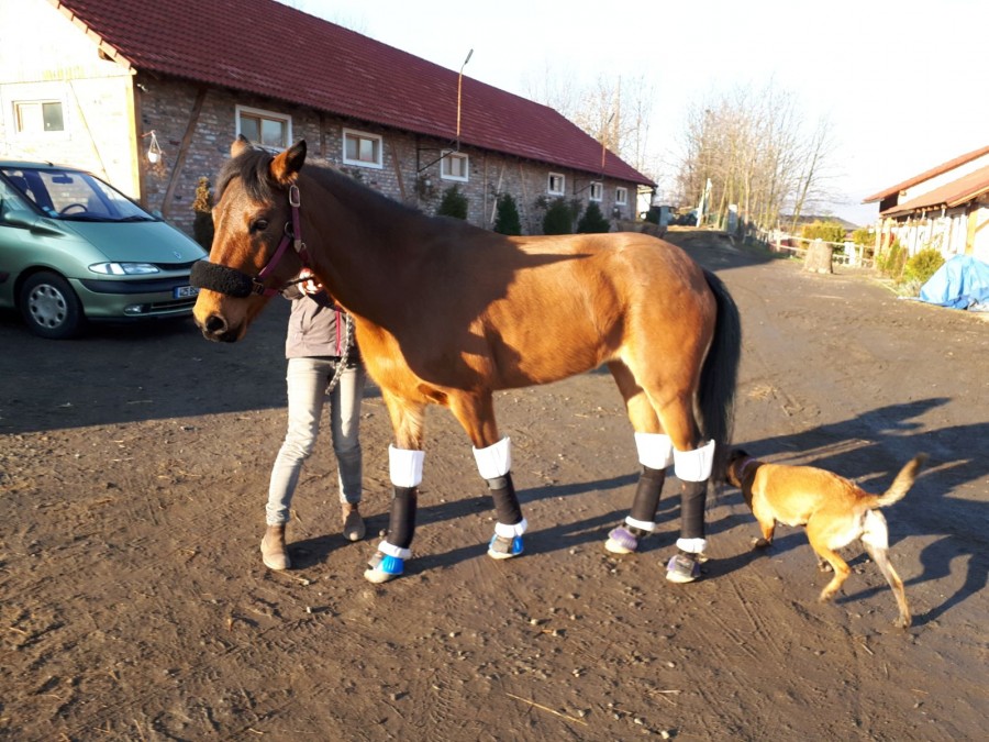 Il est 19h30 nous voilà à l'écurie. Fifi est lâchée dans le rond de longe. Un petit pansage, de l'argile et elle passera la nuit en box au milieu de frisons et de lippizans.