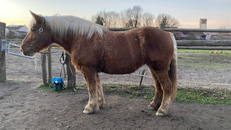 Nina est une jument ardennaise de 30 ans (2017) qui a été élevée dans les Vosges et qui avait pour vocation d'être poulinière. Après son premier poulain à l'âge de quatre ans, elle est vendue à son ancien propriétaire (qui s'occupe toujours d'elle en mon absence : TEDDY). Elle a fait beaucoup de balades aux trois allures en terrains variés, des randonnées, un peu d'obstacle.