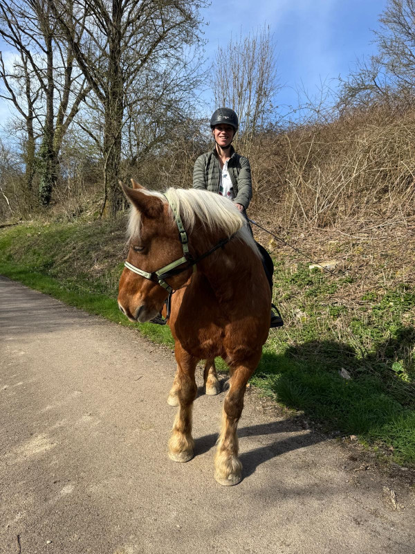 Je suis une jeune femme de vingt-sept ans, passionnée depuis toujours par les chevaux et les animaux en général. Je suis détentrice du Galop 1 et du Galop 2 de cavalier. J'ai débuté l'équitation dans un premier petit club en 2011, j'ai ensuite évolué vers un second, plus grand, en Alsace, que j'ai quitté suite au déménagement du poney dont j'étais tombée amoureuse. La vie m'a fait rencontrer Nina et Golfite, deux juments de propriétaire. Je les rachète en 2014, année de leur mise en retraite. Fin 2016 j'achète Tartine, une comtoise de laquelle je tombe folle amoureuse sur photo. Elle arrivera dans ma vie le 27 Novembre 2014. Je suis aide-soignante en ehpad depuis plusieurs années et mon métier, ainsi que mon âge et mes envies ont eu raison de ma vie idéale des chevaux à la maison. Je suis très épanouie d'enfin trouver une pension digne de ce nom pour déléguer la surveillance de ma jument.(voir histoire ci-dessous!)