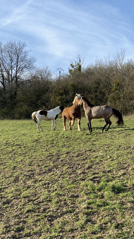 Depuis 1 semaine que nous sommes la ça nous chante clairement la vie. Le transport s’est passé PARFAITEMENT, l’arrivée zéro réaction, comme si elles avaient toujours vécu la. Première balade le lendemain. Première séparation le surlendemain + carrière. Le jour d’après manège et TAP parfait !