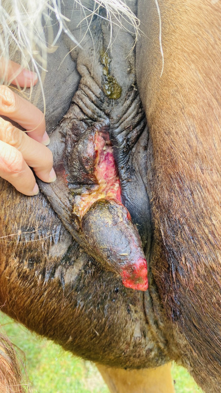Alors j'entretiens Tartine et je soigne Golfite. Tantôt d'une chute dans les barbelés, tantôt d'une perte sévère d'état, tantôt d'une incapacité à se relever seule, tantôt d'une grosse crise de myosite qui aura duré une longue semaine et enfin, d'une perte générale de l'état avec un ulcère cornéen radical gros comme mon pouce, qui clôturera les débats et nous amenèra à l'ultime décision de l'euthanasie le 1er Octobre 2024;