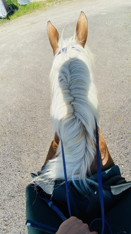 A ce moment-là je commence à monter et à vouloir faire ma grande mais je me prend un poing en pleine figure. Elle est pas prête. Elle a 7 ans et demi, mentalement elle est pas prête, moi non plus, donc début 2016 on commence le travail à pied. Là c'est une catastrophe, tout à réapprendre, impossible de lui faire quitter les copines...