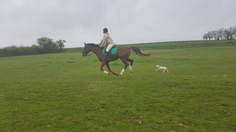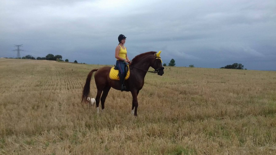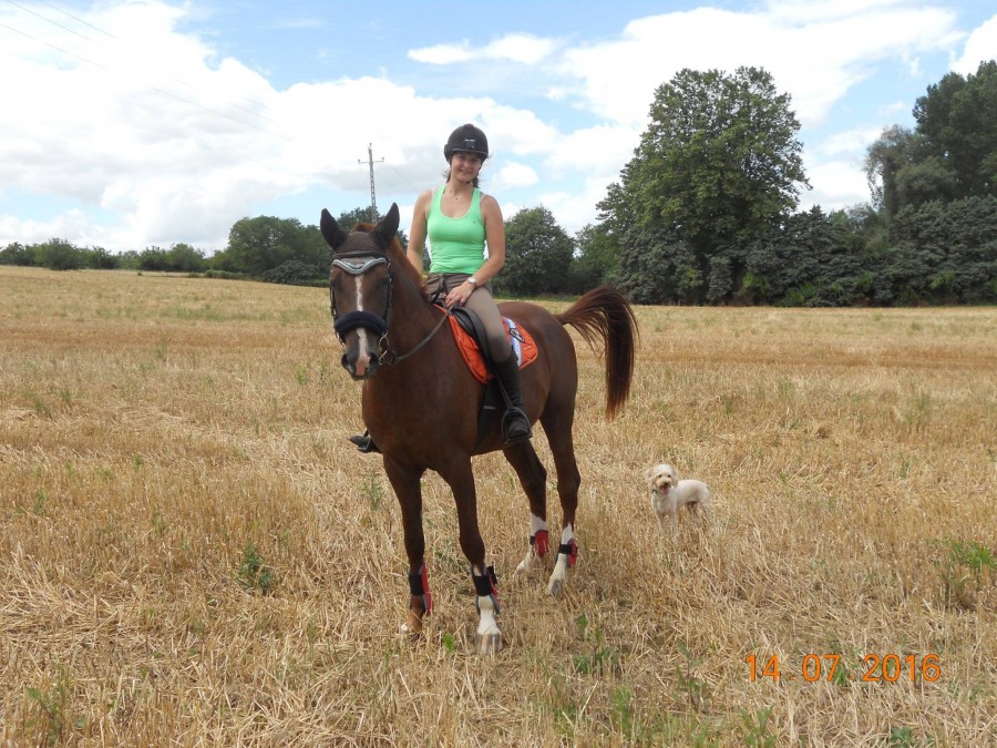 Elle ne rentre pas dans les prés ou paddock sans mon autorisation, et en balade, on continue de travailler, ça ne fait que depuis cet été qu'elle m'accompagne à chaque fois!