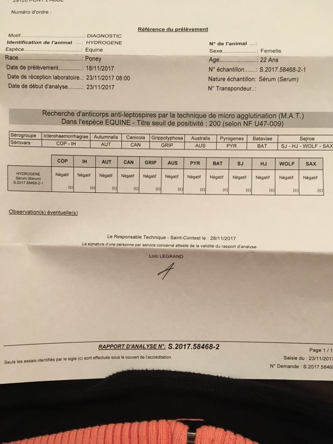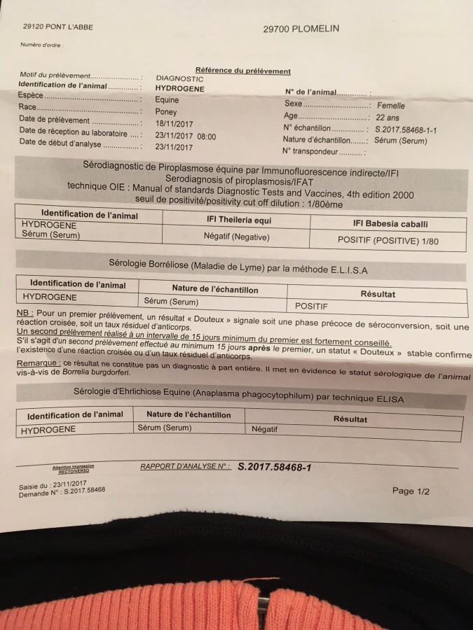 Des nouvelles... J'ai reçu les résultats de la prise de sang. Sans surprise, ma jument est positive à la piroplasmose et à la maladie de Lyme.