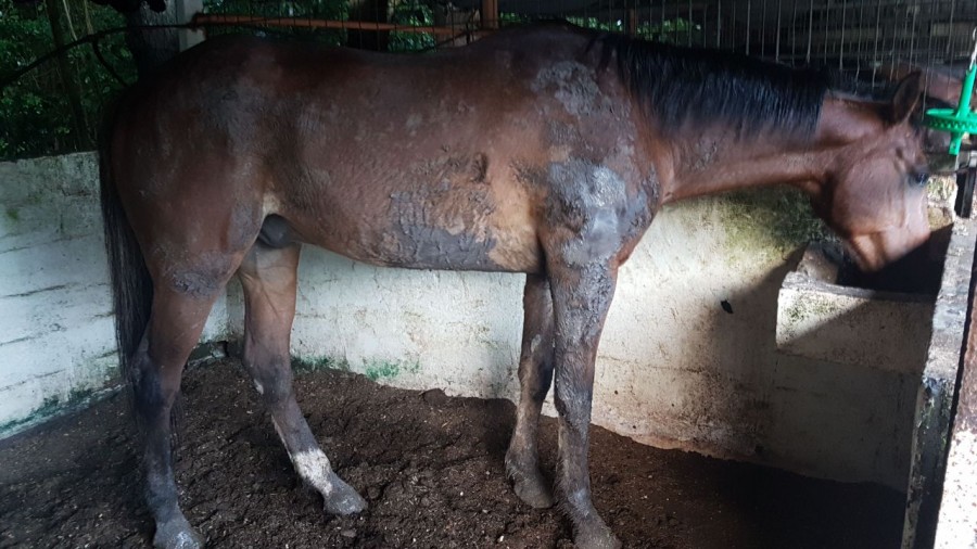 Pas une morsure, pas une marque de pied, rien, cheval intact ! Tout content de sa nuit au pré !