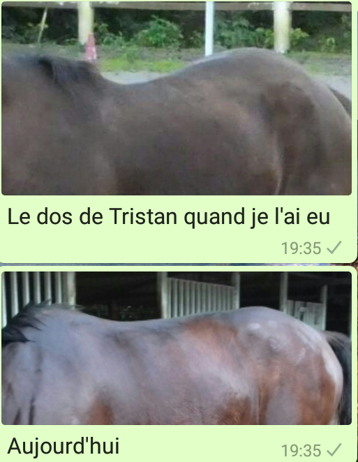 Comme tu dis, on oublie pas pour autant, perso j'ai juste appris à beaucoup plus en profiter, je repense très souvent à Ti Kaye, beaucoup me disent que c'es parce que j'ai pris un cheval qui lui ressemble beaucoup, mais pour moi, ce n'est pas une erreur, c'est la meilleure chose qu'il pouvait m'arriver, et chaque petit signe de Ti Kaye me rempli de joie et me fait dire que c'est le bonheur de pouvoir revivre quelques grimaces ou autre imbécillités de mon petit bébé