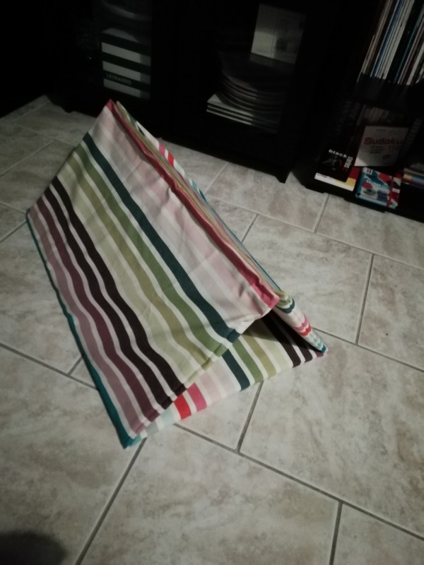J'hésite encore car j'en ai déjà une à la maison, une vieille rose. Je pourrais simplement la découper. Mais je voulais noir ou au moins gris et je garde déjà cette couverture pour les pique-nique (je l'ai payé des clopinettes chez Emmaüs).