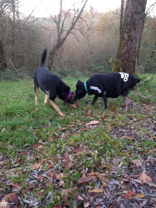 Ma chienne n'est pas tendre avec lui, elle instaure des règles et il n'est pas si docile qu'il en a l'air. J'espère que ça va s'apaiser.