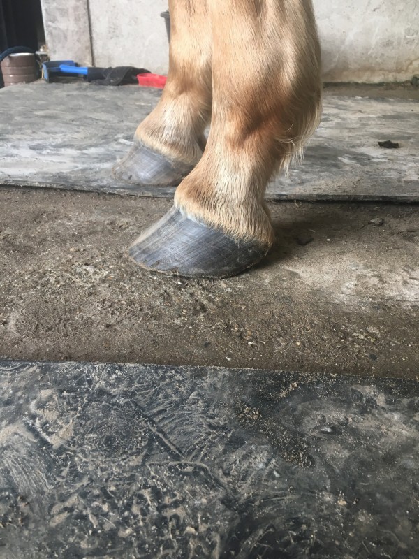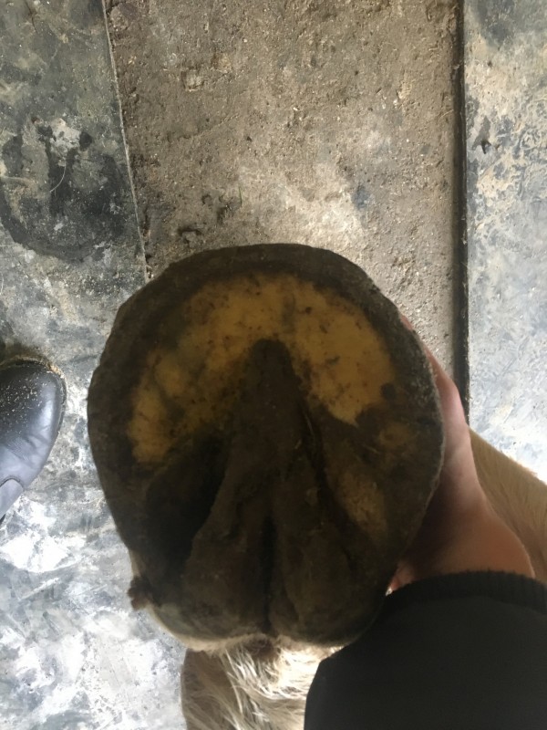 Alors sur un cheval avec des pieds comme ça, je ne me risquerais pas à être trop invasive au départ. Je sais que c'est la philosophie de certains pareurs mais je doute que ça convienne à beaucoup de chevaux...