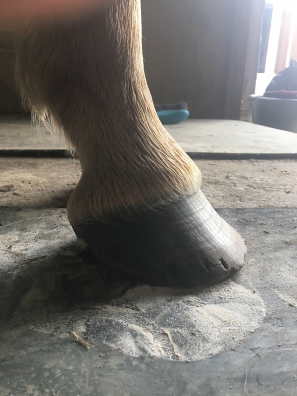 Il a été passé pieds nus début octobre. Auparavant, il était ferré des 4 jusqu'au début de l'été (chez son ancienne propriétaire), puis a été déferré des postérieurs en juillet. Il est arrivé à la maison mi-aout, donc ferré des antérieurs uniquement. Mon souhait depuis le début était de le passer pieds nus ; il vit au pré, on n'a pas d'ambitions de balade de 3h tous les jours (bien que je ne doute pas que ça puisse se faire pieds nus), et puis d'un point de vue organique, je trouve ça bien plus naturel. Donc, pourquoi s'encombrer ?