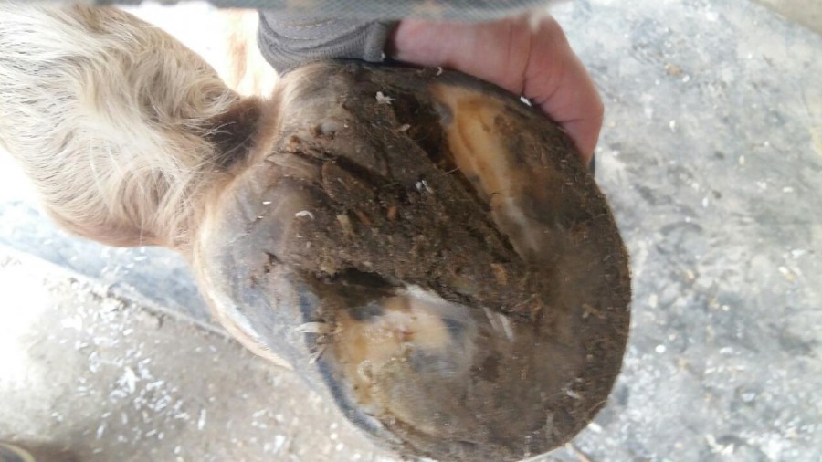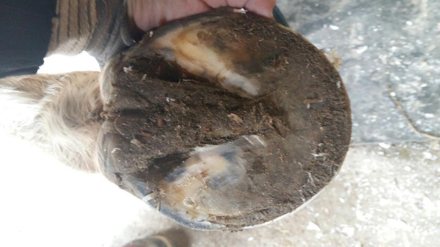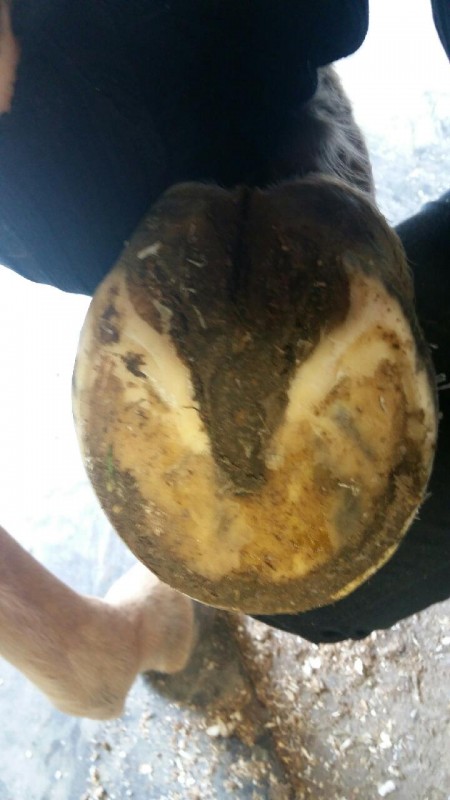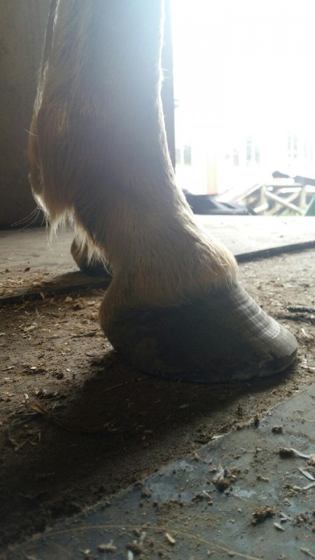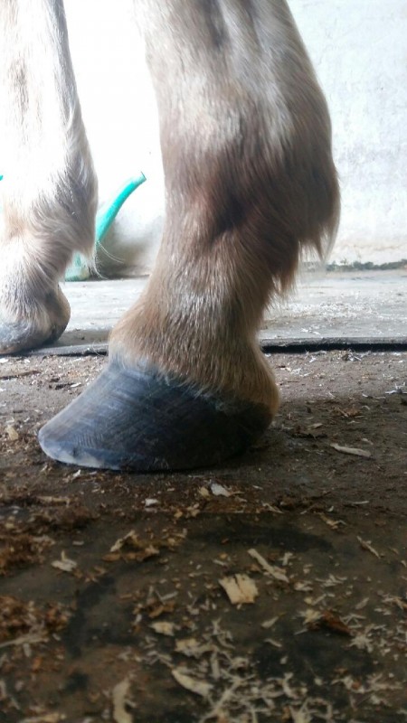 le pied fuit en avant aussi à cause du fer car laissé trop longtemps sur le pied, il aurait fallu referer ou parer avant que le pied ne prenne cette forme