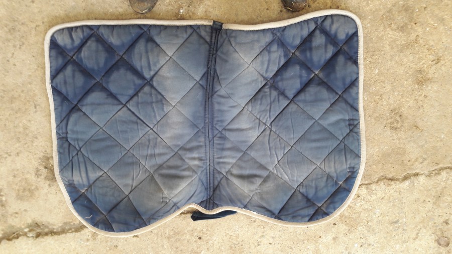 Je regarde toujours le dessous du tapis pour voir si la ligne de gouttiere est toujours bien propre, signe que la colonne du cheval est vraiment bien libre.