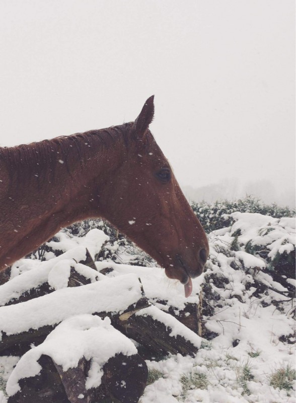 Et puis avec la neige la semaine dernière, elle n'a pas eu accès à l'herbe facilement. Faites pas attention à sa tête de blasée, en fait elle était tout simplement en train de mâcher.