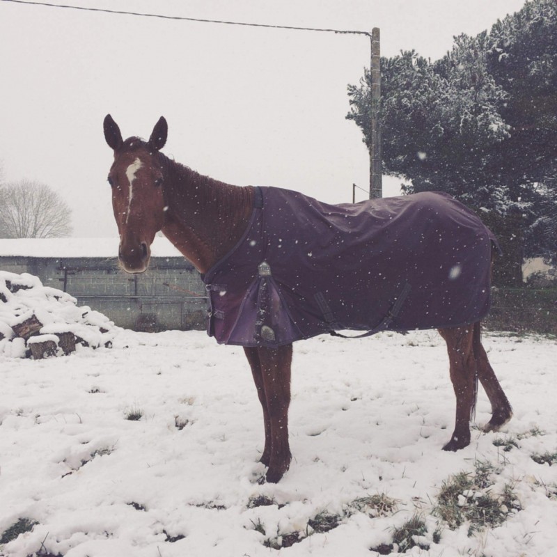 La vétérinaire se déplace, la met sous anti-inflammatoires, et «plâtre» le postérieur le plus endommagé. Elle est immobilisé en box 1 bon mois.  Les anti-inflammatoires faisant effet, elle retrouve l'appétit mais passer d'un pré à l'immobilité totale, être séparée des copains, elle peine à garder le moral et ne reprend pas beaucoup de poids. (À savoir que le box n'en est pas vraiment un, un côté est mûré mais les trois autres sont en fils, collé à l'abri de ses copains de pré donc elle peut avoir du contact avec tout de même)