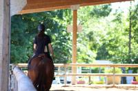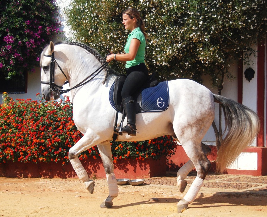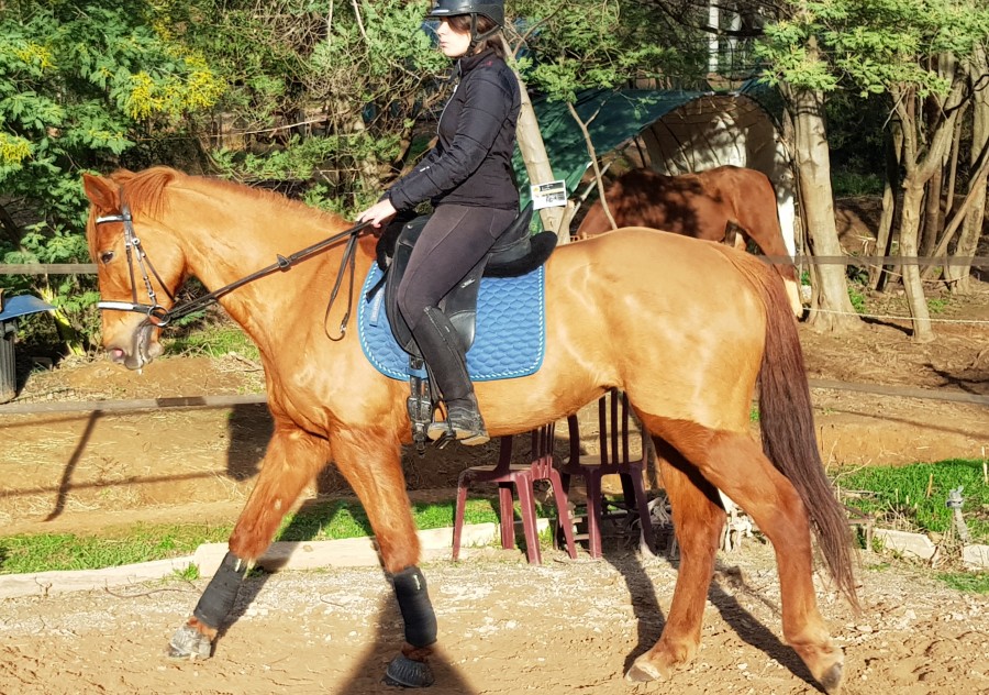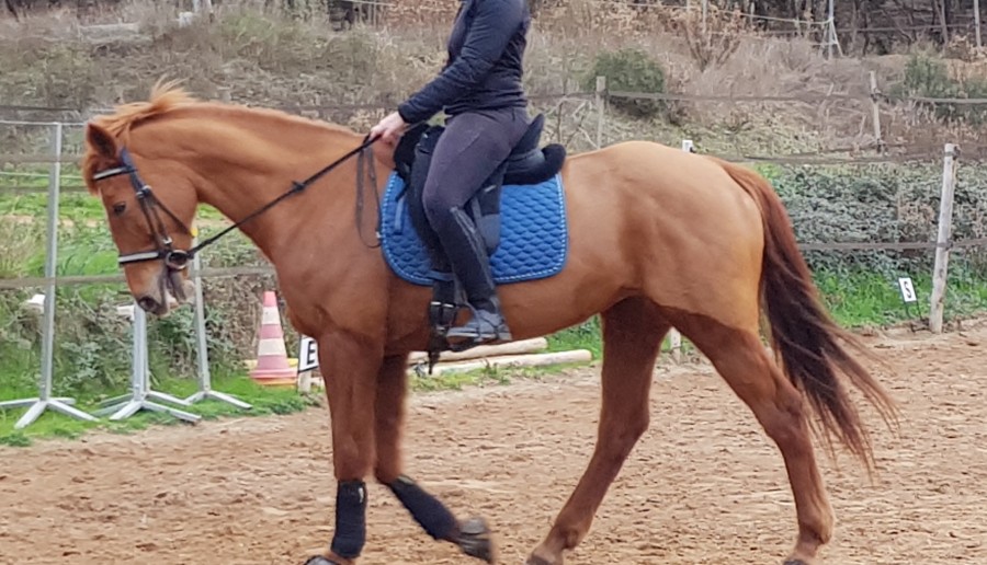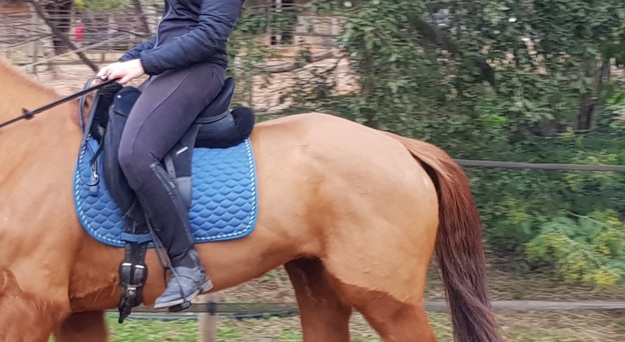 Clairement pour moi elle est un poil trop juste. Et ça risque de te poser problème avec le temps. À cheval on voit clairement que tu es assise sur le troussequin et pour du trot assis, ton bassin va être poussé vers l'avant à chaque foulée. Si tu aimes bien être encadrée, tu peux te sentir bien dedans et dans ce cas, pourquoi pas.... Mais ça ne change rien au fait qu'elle est trop petite.