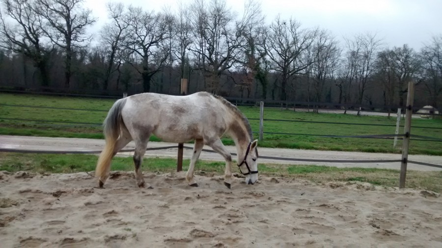 J'ai voulu trotter, mauvaise idée, après 1 tour j'ai arrêté, il s'était mis à charger l'épaule opposée. En liberté il trotte correctement mais mon poids doit le gêner.