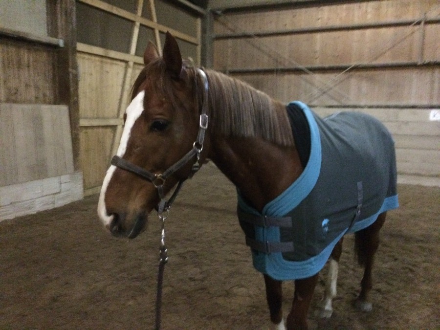 Il avait le plaid Back on Track et une polaire sur le dos pour tenir le plaid.