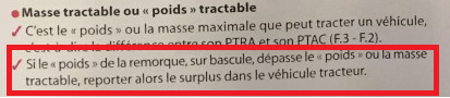 Ce deuxième point dit que si le poids de ta remorque dépasse le poids tractable calculer au premier point, tu peux reporter ce poids excédentaire dans la charge du véhicule tracteur.